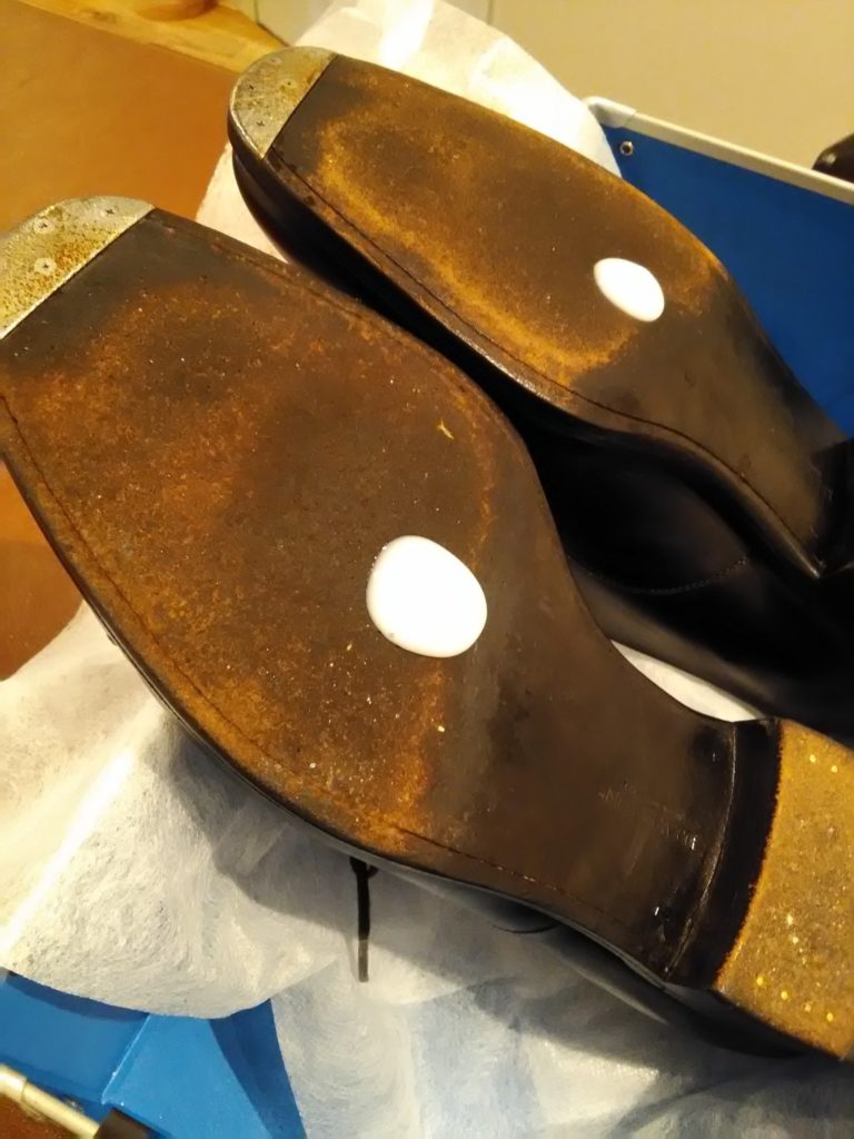ソールの革にはソールモイスチャライザーを、アッパーの革にはデリケートクリームをしっかり塗り込みました。